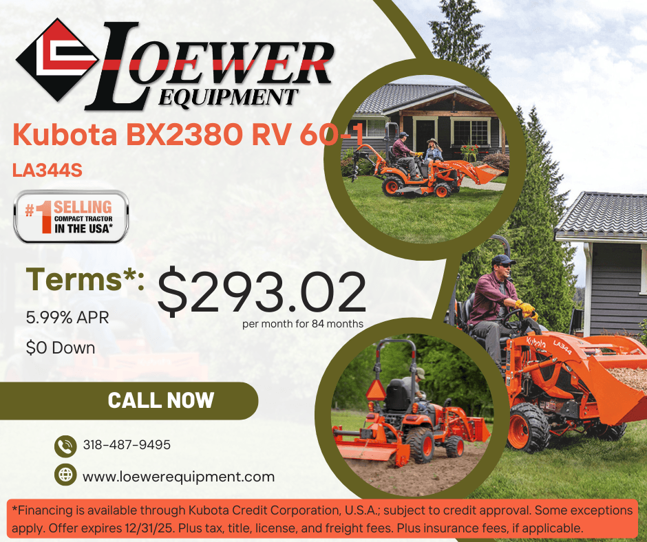 Loewer Equipment is CenLA’s authorized full-service Kubota dealer with sales of new and pre-owned inventory, parts, service and rentals departments. Loewer Equipment has been family-owned and operated for over 30 years. In addition to the full line of Kubota mowers, tractors, utility vehicles and construction equipment, Loewer Equipment proudly offers Honda Power Equipment, Stihl and Land Pride. Loewer Equipment is one part of the Loewer Powersports & Equipment family; you’ll also find Polaris, Yamaha, Honda, Kawasaki, Can-Am, Sea-Doo, Xpress Boats, Veranda Pontoons and Indian Motorcycles inside. Come in and visit our friendly, reliable, and experienced staff or call us at 318-487-9495.